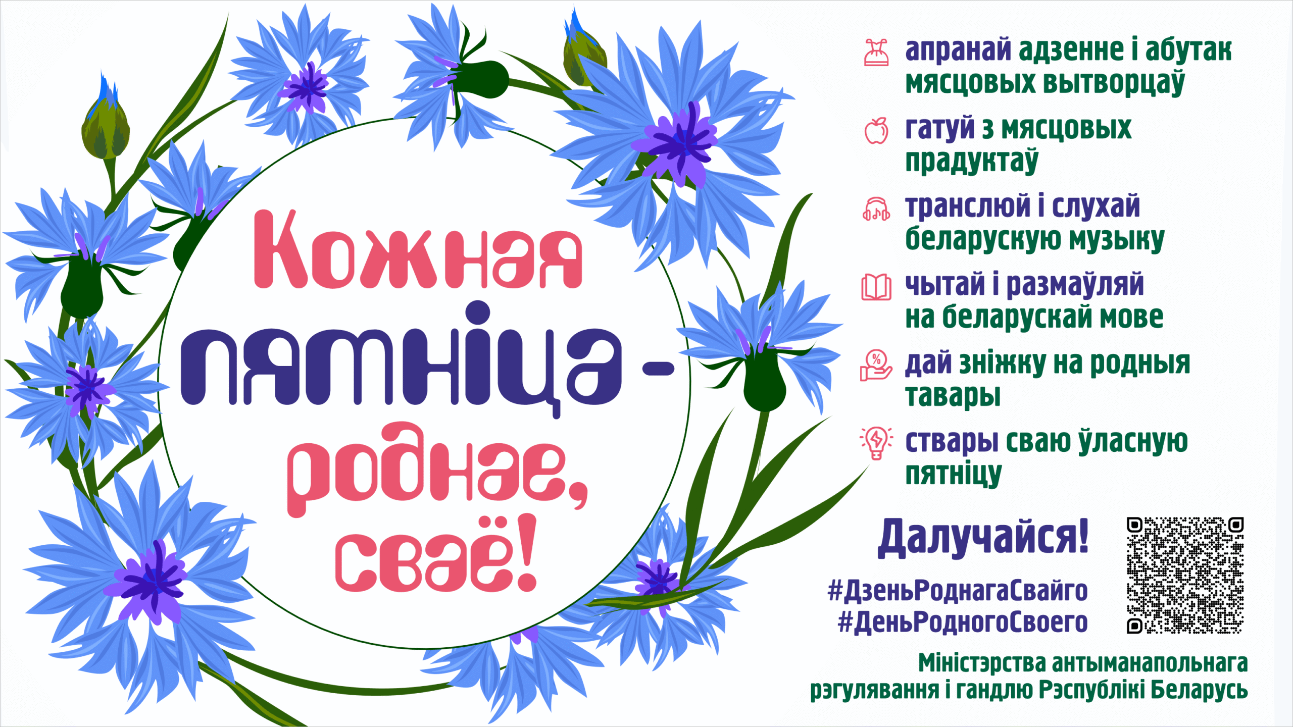 Запущен проект «Кожная пятніца – роднае, сваё», направленный на повышение культуры потребления, продвижение отечественных товаров, популяризацию их качества, разнообразия белорусских блюд, красоты родного языка.
